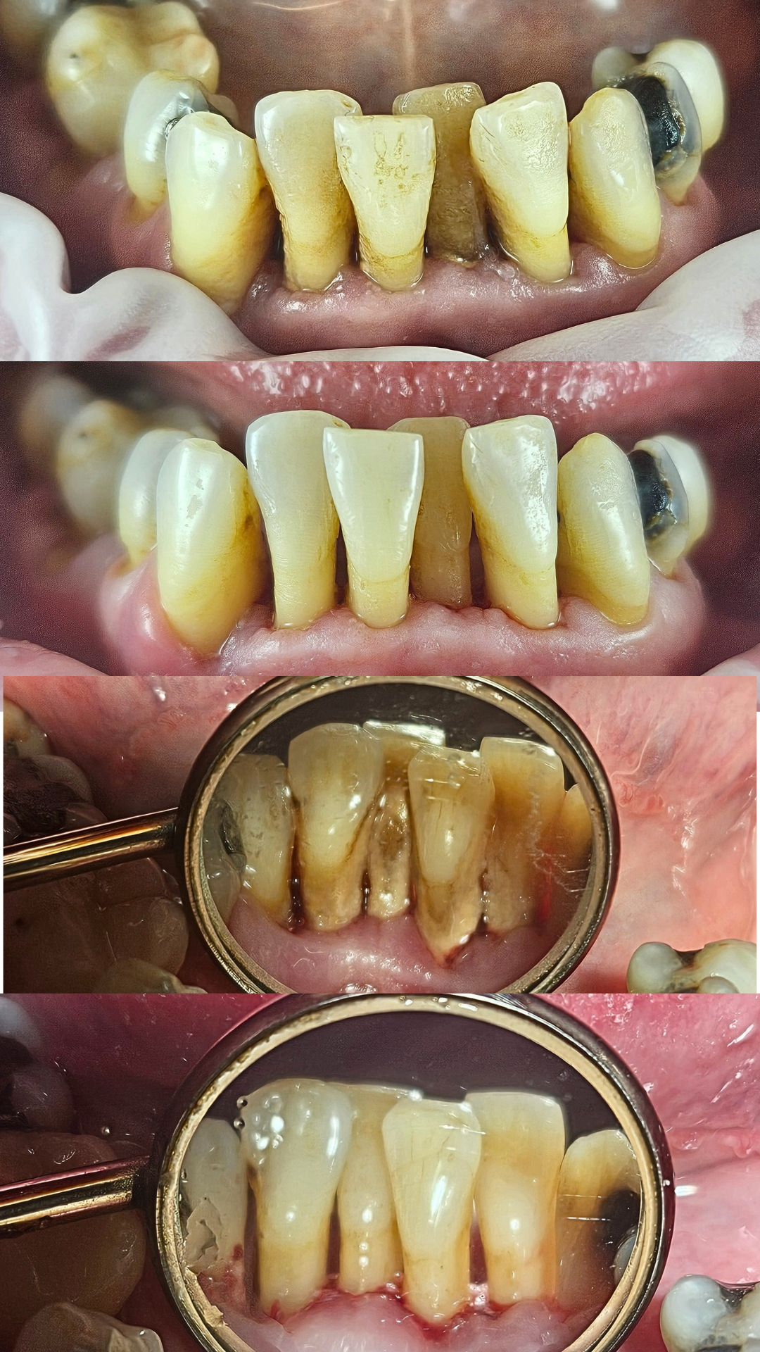 Vyšetření a zhodnocení stavu dutiny ústní, odstranění zubního kamene a pigmentací metodou Air-Flow, výběr pomůcek na čistění, instruktáž a poradenství, fluoridace zubů.