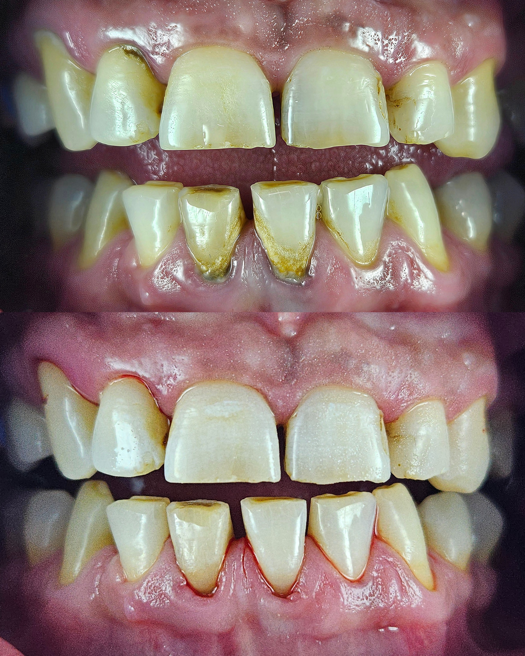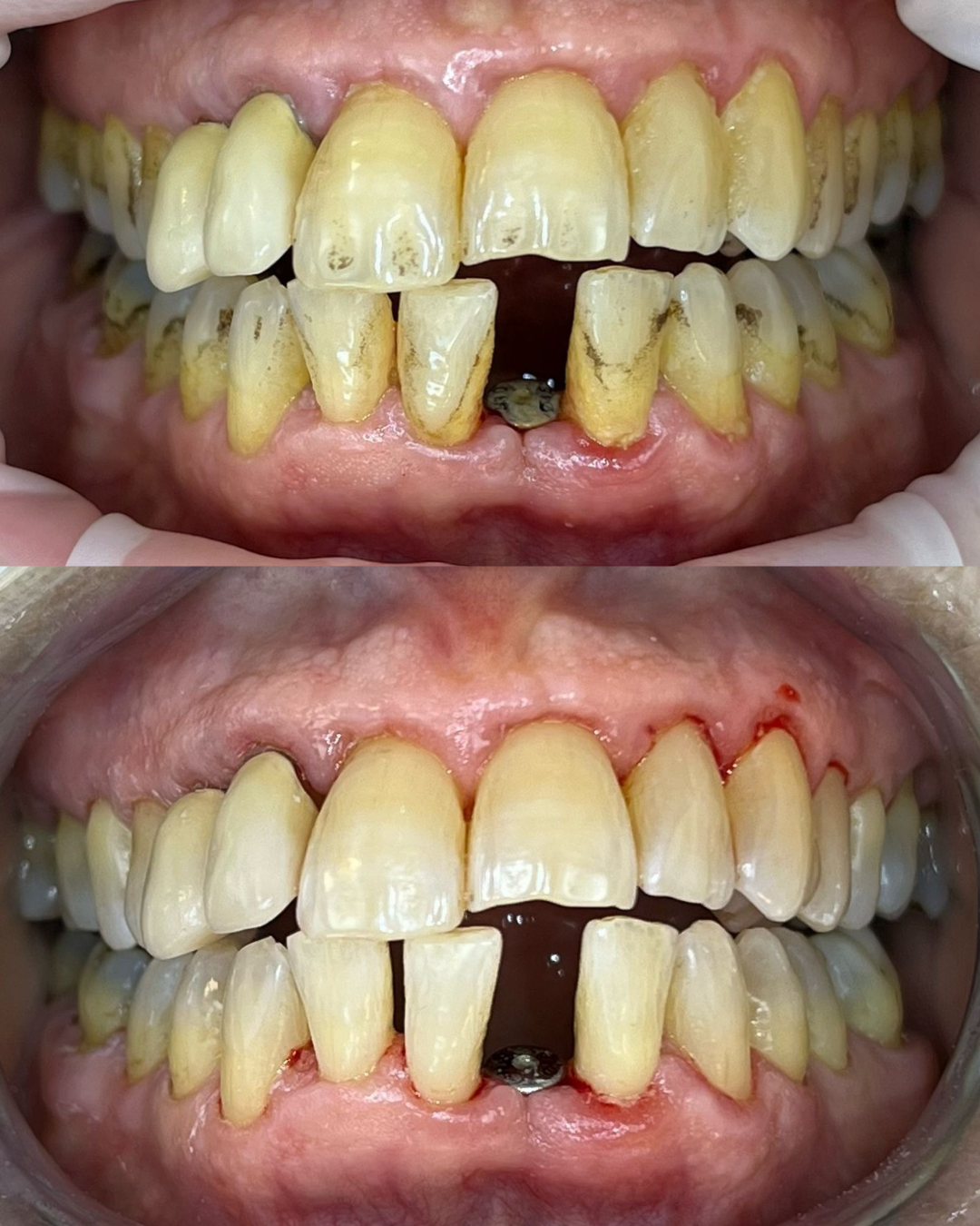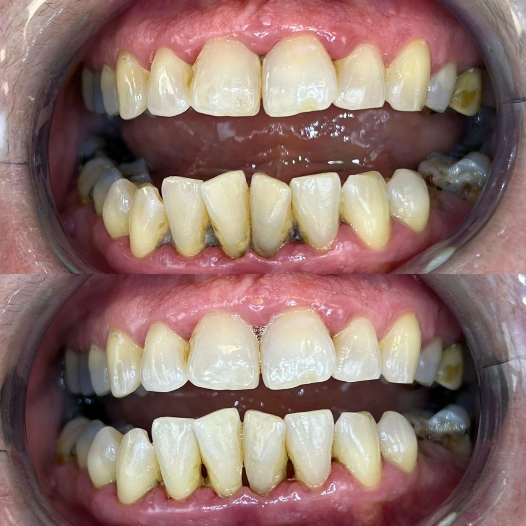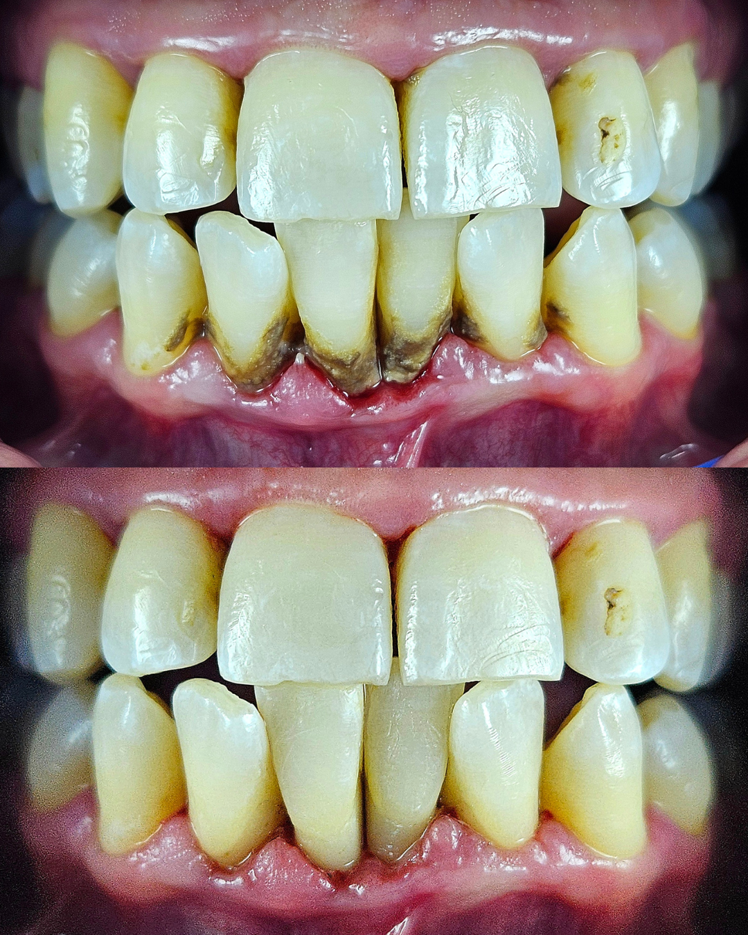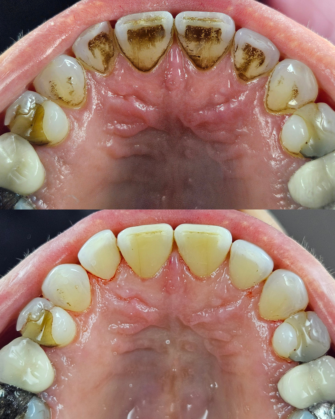Při profesionální dentální hygieně se odstraní zubní kámen, povlaky a pigmentace, které se běžným čištěním nedají zcela odstranit.